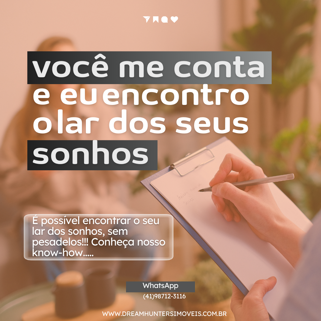 A Imobiliária DREAM HUNTERS IMÓVEIS, com toda sua experiência no mercado imobiliário, tem os melhores imóveis prontos, em construção, imóveis na planta e imóveis usados, todos a sua disposição com variadas faixas de valores, bairros e dimensões para melhor atender as suas necessidades e anseios. Ao nos procurar, nossos corretores - credenciados ao CRECI 07853J - PR estarão sempre prontos para responder-lhe todas as suas dúvidas sobre casas, apartamentos, terrenos, salas comerciais e outros produtos imobiliários.